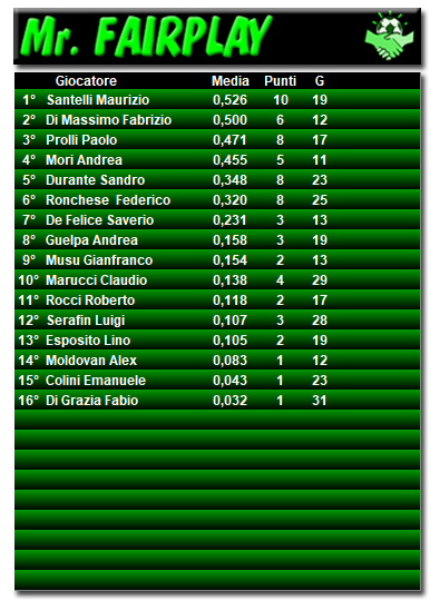 Classifiche 2018-2019 - Calcetto è Associazione sportiva calcio amatoriale
