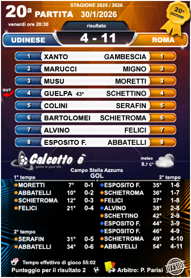 Risultati XX edizione - Calcetto è Associazione sportiva calcio amatoriale